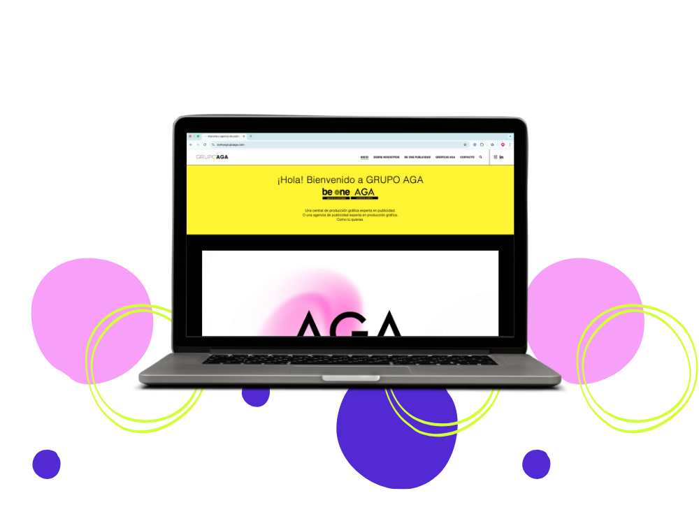 El objetivo es crear una página web que muestre de forma estructurada los proyectos y servicios de Grupo AGA. Se trabaja en un diseño claro y funcional que refuerza la identidad de marca, facilita la navegación y presenta la actividad de la empresa en los ámbitos de la publicidad y la producción gráfica.